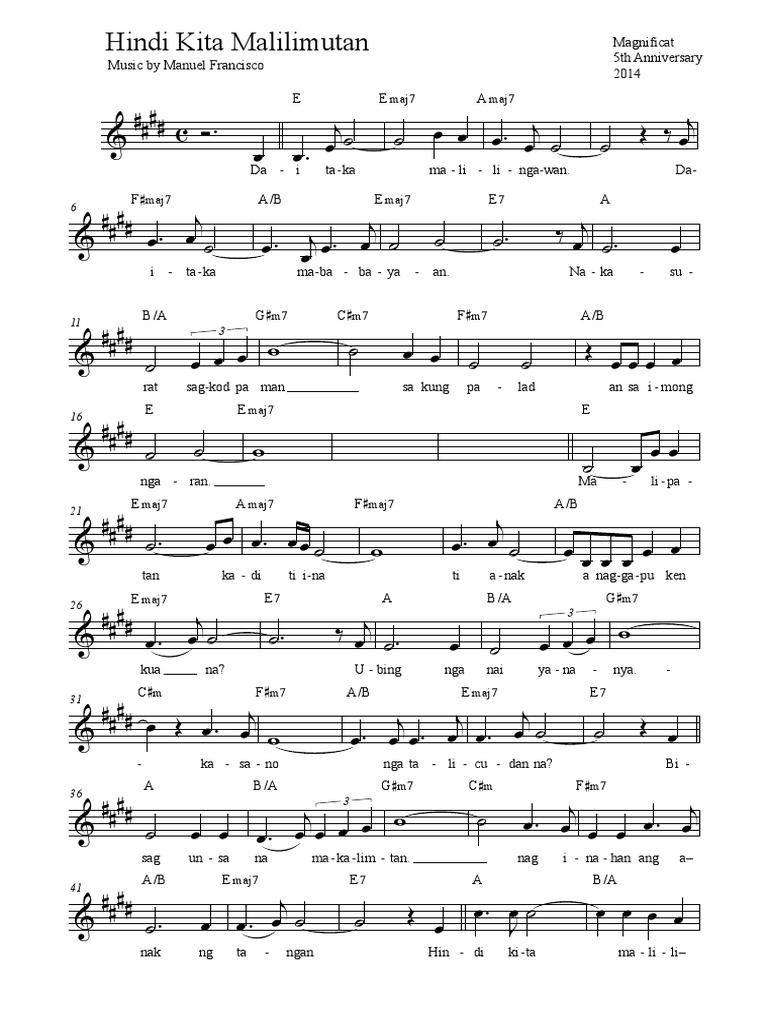 Hindi Kita Malilimutan Piano Sheet Music / F#m7 b4 b e am7 sa 'king palad ang 'yong pangalan.